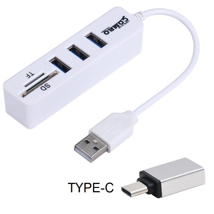 Bộ Chia 3 Cổng Usb Kèm Đọc Thẻ Nhớ + Đầu Type-C Hỗ Trợ Chơi Game Trên Điện Thoại Kết Nối Với Bàn Phím Và Chuột