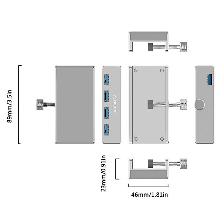 Bộ chia 4 cổng USB 3.0 dạng kẹp vỏ nhôm Orico MH4PU