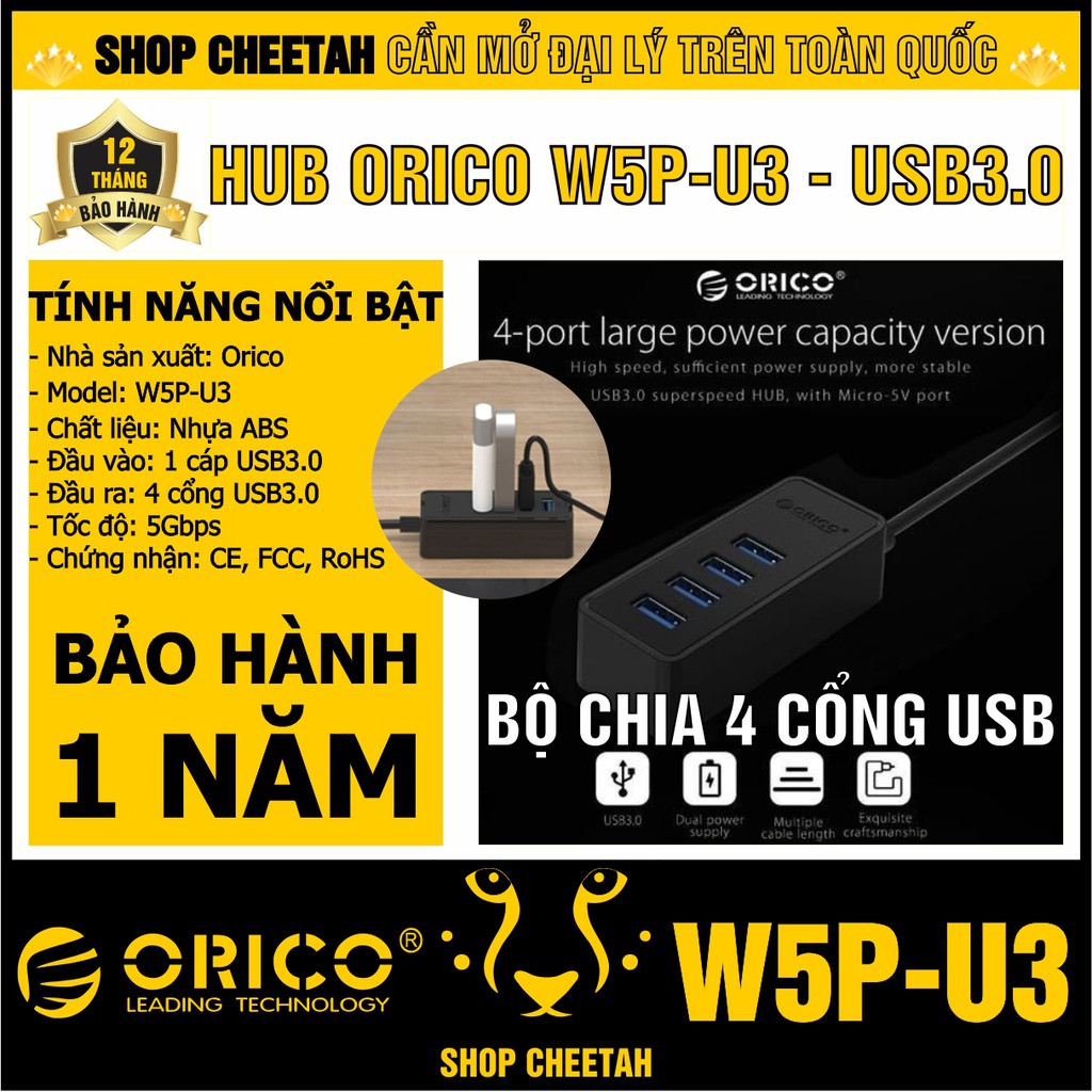 - Hub Orico W5P-U3 là bộ chuyển cung cấp cho bạn thêm 4 cổng USB 3.0 với tính năng truyền dữ liệu tốc độ cao 5Gbps và nguồn điện ổn định.
