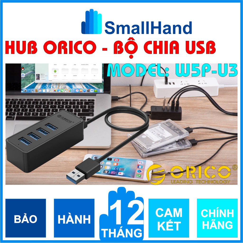 - HUB USB 3.0 Orico 4 cổng W5P-U3 chính hãng được thiết kế với khả năng đáp ứng dòng điện cho cả 4 thiết bị cùng 1 lúc, đáp ứng tốc độ không bị thay đổi quá nhiều và khả năng bảo vệ khi dòng điện quá tải và bảo vệ ngắn mạch để giữ cho nó khỏi quá áp, quá dòng, rò rỉ.