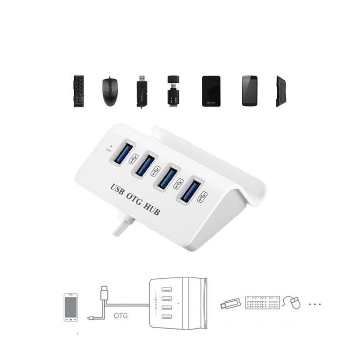Máy tính & Laptop > Phụ Kiện Máy Tính > Bộ chia cổng USB & Đọc thẻ nhớ || BỘ CHIA 4 CỔNG USB HUB OTG ĐẾ GÀI ĐIỆN THOẠI, MÁY TÍNH BẢNG TIỆN LỢICòn hàng