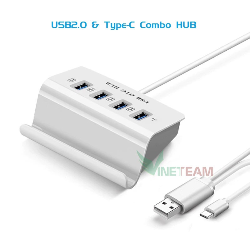 Bộ Chia 4 Cổng USB OTG HUB Chuẩn Type-c Kiêm Giá Đỡ -dc3394