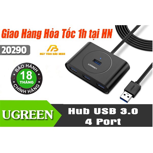 Giới thiệu Bộ chia 4 cổng USB Ugreen 20290 Chuẩn USB 3.0 Dài 0,5m - Hàng Chính Hãng