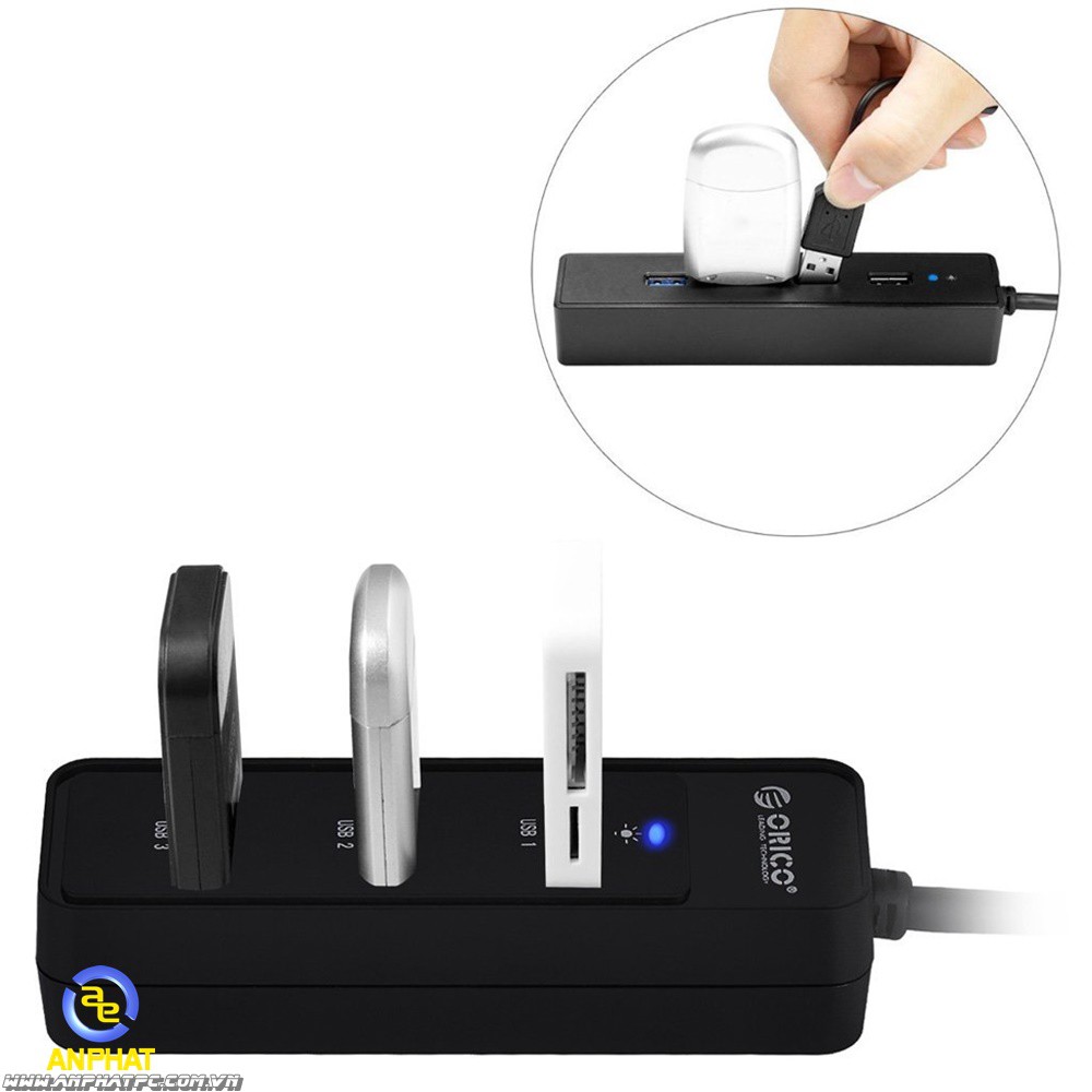 Bộ chia 4 Port USB 3.0 ORICO W5PH4-U3 - chính hãng BH 12 tháng*Lưu ý : HUB USB ngoài thường không có nguồn phụ và không chịu tải được từ 3-4 USB trở lên cắm cùng một lúc. ANPHATPC đã thử test sản phẩm ORICO trực tiếp và xác nhận làm được