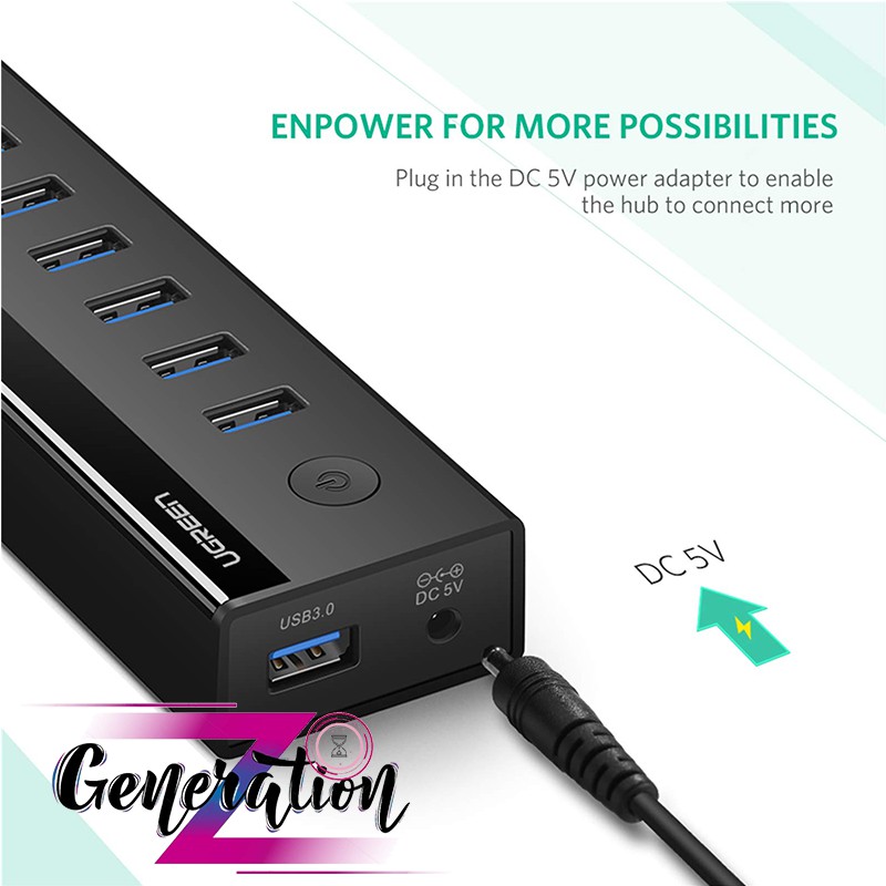 HUB USB 7 Cổng USB 3.0 Cao Cấp Có Nguồn 5V 2A Chính Hãng Ugreen 30845 - Mã mới : 40522Hub USB 3.0 có nguồn 5V 2A 7 Cổng Cao cấp Ugreen 30845 là phụ kiện cao cấp giúp chia cổng usb trên máy tính, laptop... của bạn thêm 7 cổng usb 3.0 với tốc độ truy xuất dữ liệu lên đến 5Gbps, với nguồn cấp phụ 5V giúp thiết bị có khả năng sao chép, truyền tải tập tin số dung lượng lớn ổn định và nhanh chóng. Với nhiều lớp bảo vệ quá dòng, quá áp, chống ngắt đột ngột... Ugreen 30845 thật sự là một thiết bị hoàn hảo cho mọi nhu cầu mở rộng kết nối USB 3.0 của bạn.