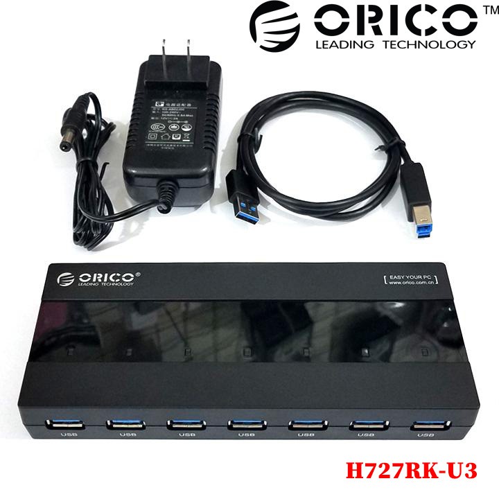 Máy tính & Laptop > Phụ Kiện Máy Tính > Bộ chia cổng USB & Đọc thẻ nhớ || Bộ chia 7 cổng USB 3.0 kèm nguồn Orico H727RK-U3 - HB12Còn hàng