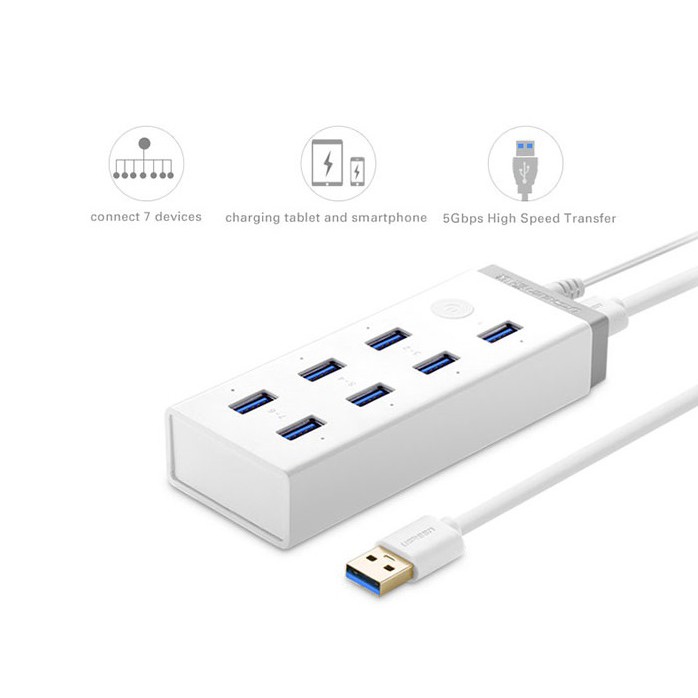 Máy tính & Laptop > Phụ Kiện Máy Tính > Bộ chia cổng USB & Đọc thẻ nhớ || Bộ chia 7 cổng USB 3.0 kèm nguồn hỗ trợ sạc Ugreen 20296Còn hàng