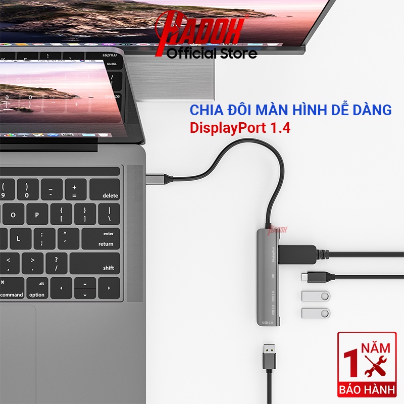 QUY ĐỊNH ĐỔI TRẢ: Bộ chia cổng hub type c to displayport, dp, usb, pd, bộ chuyển đổi type-c 5in1 cho laptop, macbook, ipad
