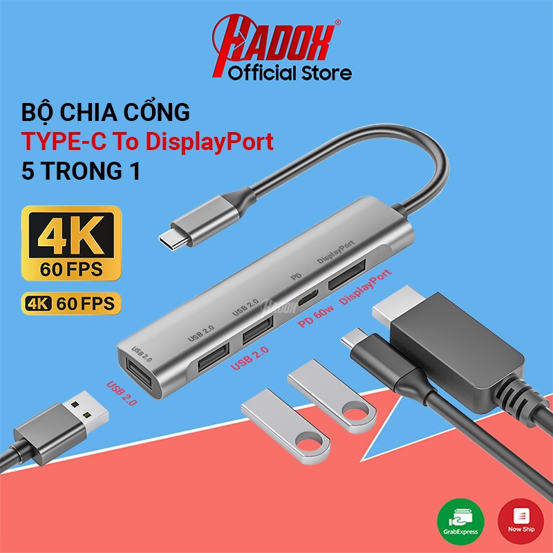 Máy tính & Laptop > Phụ Kiện Máy Tính > Bộ chia cổng USB & Đọc thẻ nhớ || Bộ chia cổng hub type c to displayport, dp, usb, pd, bộ chuyển đổi type-c 5in1 cho laptop, macbook, ipadCòn hàng