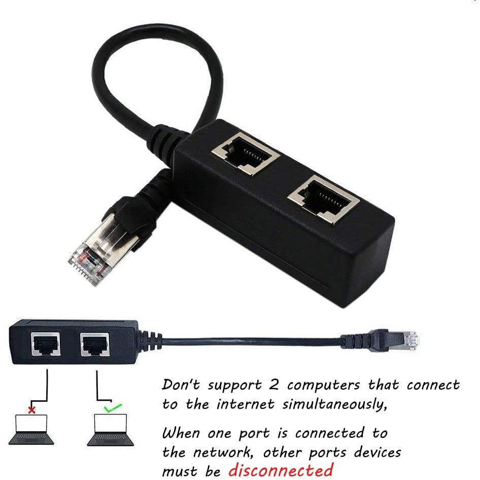 Hai cáp mạng có thể được kết nối thành một cáp dài hơn thông qua bộ chia này.