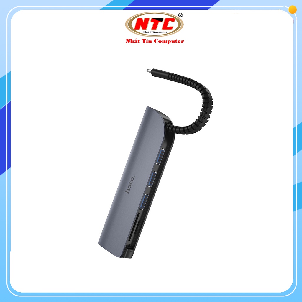 Bộ chia cổng Type-C sang 3 cổng USB3.0 + SD + TF Hoco HB17 Easy connect (Xám) - Nhất Tín Computer