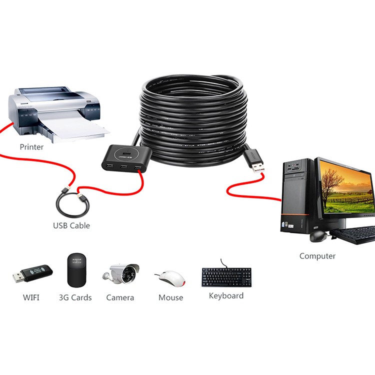 Máy tính & Laptop > Phụ Kiện Máy Tính > Bộ chia cổng USB & Đọc thẻ nhớ || Bộ Chia cổng USB 2.0 4 Cổng Có Active Chip với cáp Dài 10M Ugreen 20217Còn hàng
