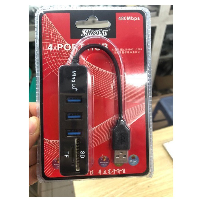 Máy tính & Laptop > Phụ Kiện Máy Tính > Bộ chia cổng USB & Đọc thẻ nhớ || Bộ chia cổng USB 3.0 1 ra 3 cổng Minglu kèm khe đọc thẻ nhớ SD và Micro SDCòn hàng