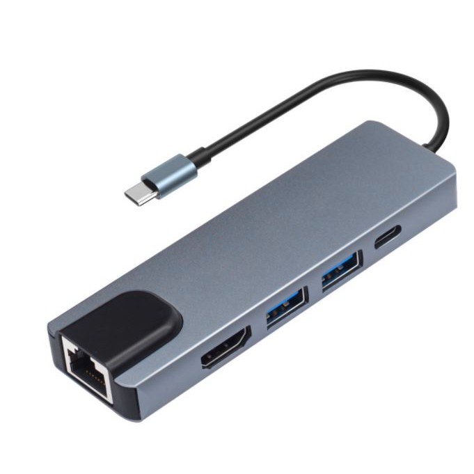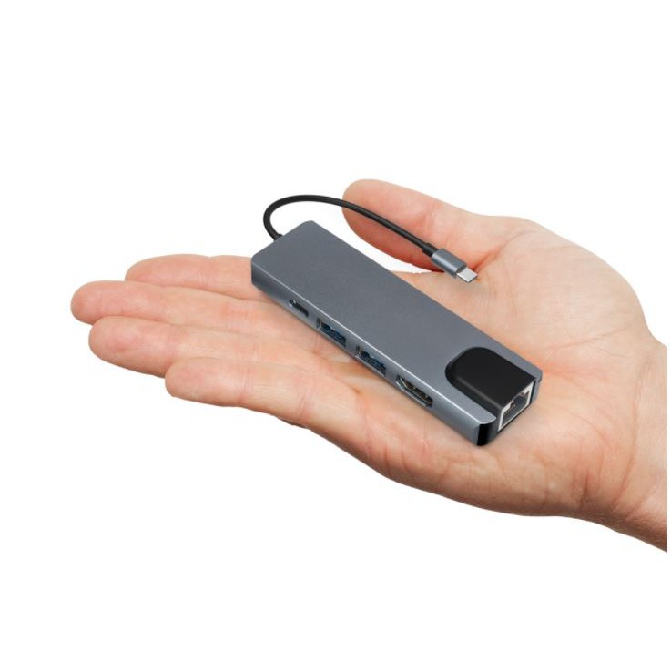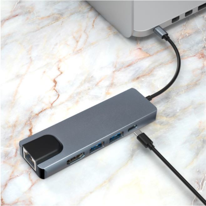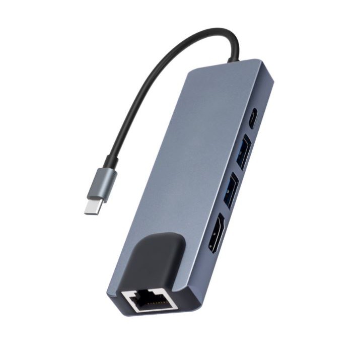 Hub Type-C đa năng, kết nối với các thiết bị USB-C với hub type-C 6 trong 1 có cổng Ethernet, cổng sạc USB C với khả năng sạc, cổng 4K HD và 2 USB 3. 0 cổng.