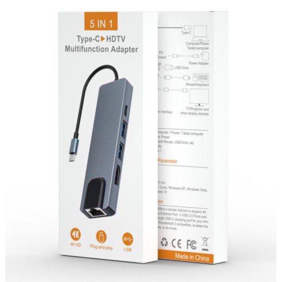 Gói hàng bao gồm: 1 x Hub chuyển USB Type-C 5 trong 1