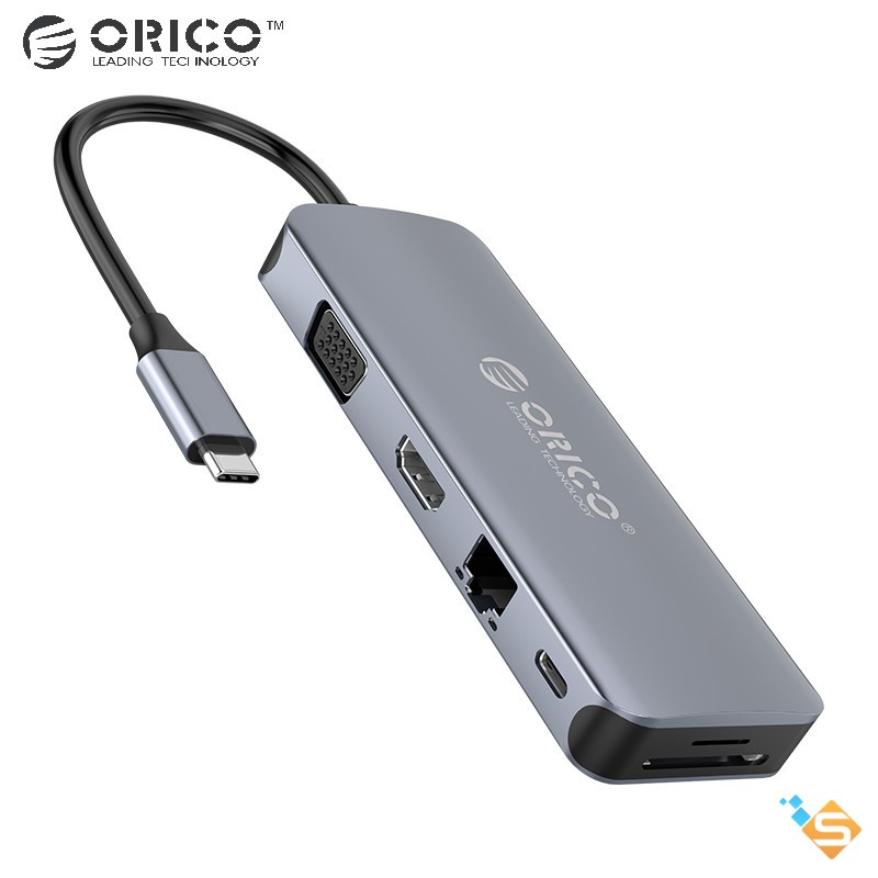 Bộ Chia Cổng USB 3.0 Type-C 11 trong 1 ORICO USB * 3 HDMI VGA LAN TF/SD Audio PD 100W Cho MacBook UltraBook - BH 1 Năm