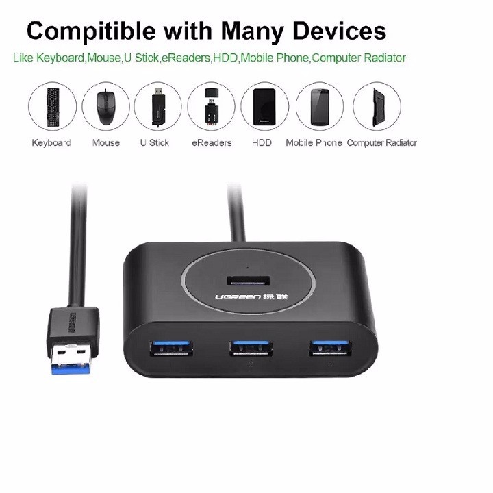Máy tính & Laptop > Phụ Kiện Máy Tính > Bộ chia cổng USB & Đọc thẻ nhớ || Bộ chia cổng USB 4 cổng 3.0 dài 80cm chính hãng Ugreen UG-20291Còn hàng
