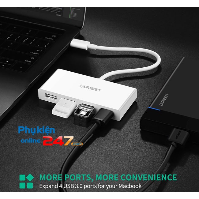 Sản phẩm được thiết kế để mở rộng 4 cổng USB 3.0 cho thế hệ máy tính mới nhất với cổng USB-C, bao gồm MacBook Air 2018, Macbook Pro touchbar, Macbook Pro 13, 15 ich hoặc máy tính xách tay khác với cổng USB type C.