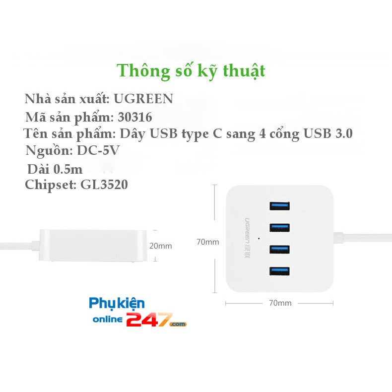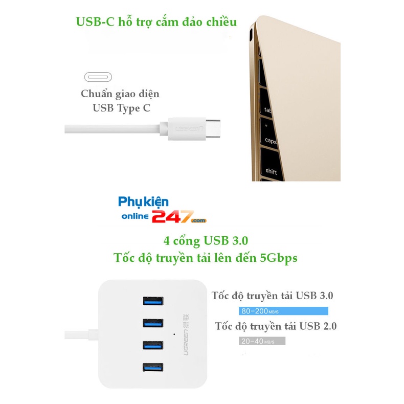 Thương hiệu: Ugreen | Xem thêm các sản phẩm Hub USB của UgreenMô tả ngắn