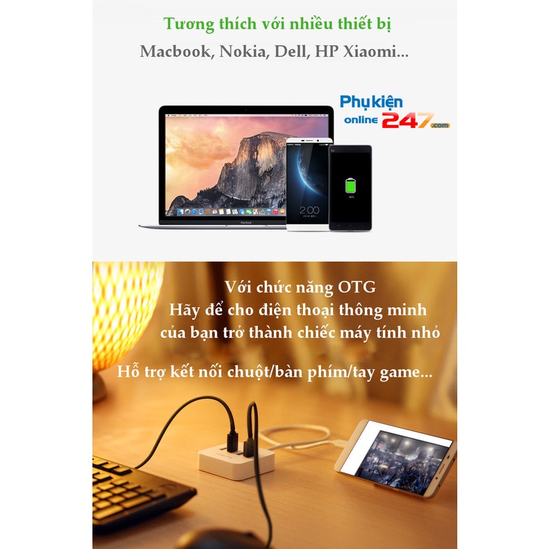Bộ chia cổng USB type C ra 4 cổng USB 3.0Bộ chuyển USB TYPE C to Hub USB 3.0 4 Cổng là phụ kiện cao cấp giúp mở rộng thêm 4 cổng USB 3.0 cho các thiết bị như máy tính, macbook, điện thoại, máy tính bảng đời mới sử dụng cổng USB TYPE C. Giúp bạn dễ dàng kết nối các thiết bị ngoại vi như chuột, bàn phím, ổ cứng di động, máy in, bộ nhớ usb, card reader... cùng lúc.