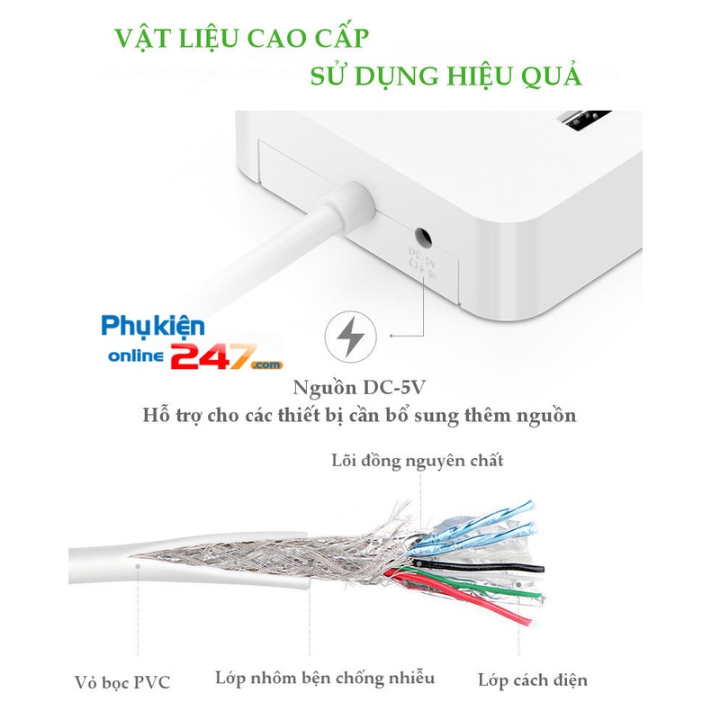 Tính năng: Chuyển đổi USB Type C sang 4 Cổng USB 3.0