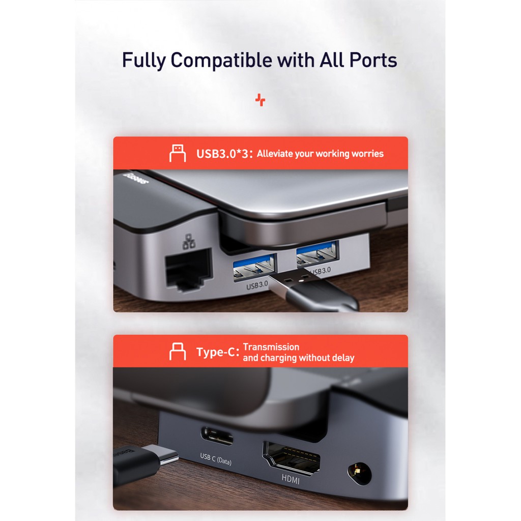 Bộ chuyển đổi Hub đa chức năng BASEUS Armor Age Type-C 9 cổng kết nối kiêm đế kê tản nhiệt, giả pháp 2 in 1 mỏng nhẹ tiện dụng và đạt tiêu chuẩn Hoa Kỳ cấp giấy chứng nhận: CE, ROHS, FCC- Thương hiệu: Baseus