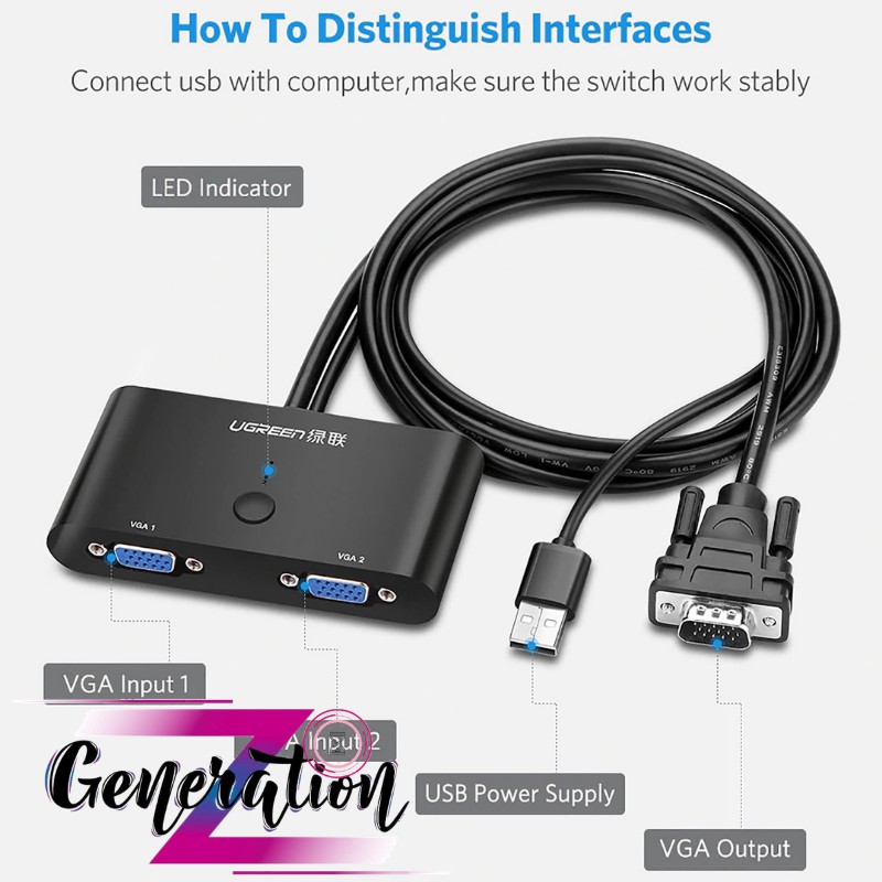 Máy tính & Laptop > Thiết Bị Mạng > Bộ Chuyển Mạch KMV || Bộ chia - gộp VGA Ugreen 30711 - Bộ Chuyển Mạch VGA 2 cổng Ugreen 30711Còn hàng