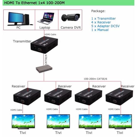 Trong khi một bộ chia HDMI 1 ra 2 được hiển thị, Bộ chia 1 ra 4 cũng hoạt động theo cách tương tự, xuất ra 4 màn hình thay vì 2.