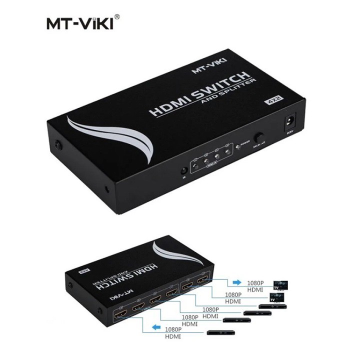- HDMI Switch 4 vào 2 ra chính hãng MT-VIKI MT-HD4-2- Hỗ trợ xuất tín hiệu từ 4 nguồn HDMI ra 2 cổng xuất HDMI riêng biệt
