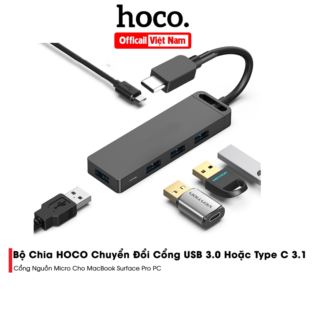 Máy tính & Laptop > Phụ Kiện Máy Tính > Bộ chia cổng USB & Đọc thẻ nhớ || Bộ Chia HOCO Chuyển Đổi Cổng USB 3.0 Hoặc Type C 3.1 Với Cổng Nguồn Micro Cho MacBook Surface Pro PCCòn hàng