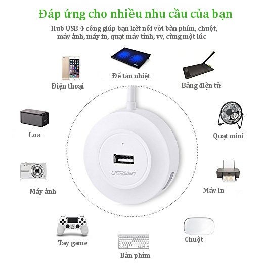 Bộ chia Hub 4 cổng USB 2.0 tiện lợi Ugreen 20270 - Hàng Chính HãngBộ Chia 4 Cổng USB 2.0 Ugreen 20270 cho phép bạn kết nối nhiều thiết bị USB với một cổng USB. Kết nối bàn phím, chuột, máy ảnh, máy in, máy tính cá nhân vv trên máy tính của bạn cùng một lúc.
