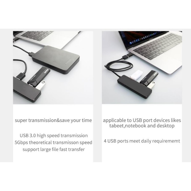 Giới thiệu Bộ Chia Hub 4 Cổng USB 3.0/ 2.0 ACASIS Nhỏ Gọn Dùng Cho Laptop, PC, Bàn Phím, Chuột, Ổ Đĩa... AB3-L42....Dài 20/60/120cm