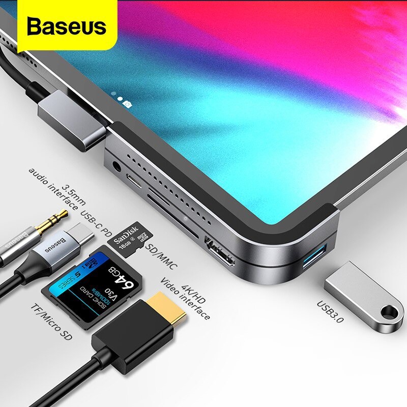 Bộ Chia HUB Baseus 6 Cổng, Type-C Sang HDMI, USB 3.0, TF Slot, SD Slot, Jack 3.5mm, Magnetic Pad, Type-C PD Slot Cho Ipad Pro, Macbook ProMô Tả Sản Phẩm