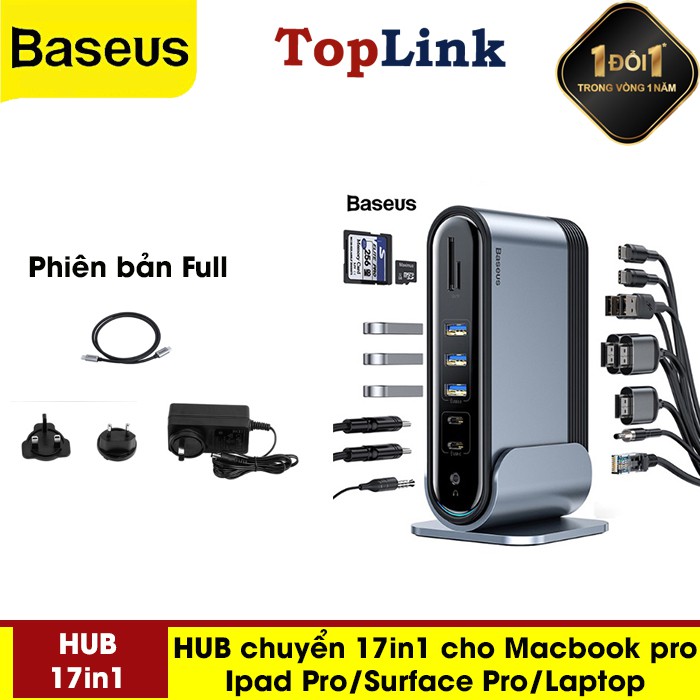 - Với Hub chuyển đa năng Baseus Working Station 17 in 1 Multifunctional bạn có thể dễ dàng xuất hình ảnh, âm thanh độ nết cao qua cổng HDMI / AUX 3.5mm , đồng bộ và chia sẽ dữ liệu/ hình ảnh từ thẻ nhớ, các thiết bị lưu trữ. Ngoài ra bộ HUB còn được trang bị cổng mạng LAN có dây (RJ-45) cho phép bạn có thể kết nối mạng ở những nơi không có Wifi . Bạn sẽ không còn phải gặp các phiền phức và bất tiện do thiếu cổng kết nối.