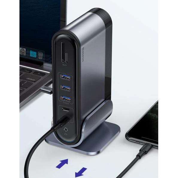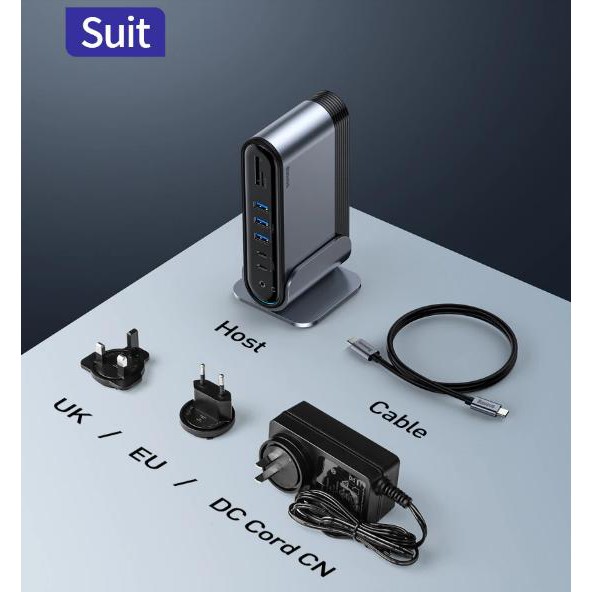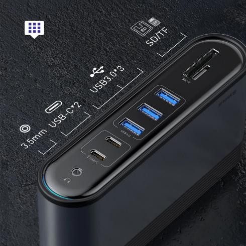 Hình ảnh chi tiết Hub chuyển đa năng Baseus Working Station 17 in 1 Multifunctional HUB (Type C*4 / HDMI*3 / RJ-45 Gigabit / SD,TF Card / USB3.0*3/ USB2.0*2/ Audio AUX 3.5mm/ DC 12V)