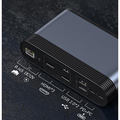 USB 3.0*3 + USB 2.0*2 + HDMI*3 +TF/SD Card Reader + RJ45 +PD + PC +3.5mm Jack + DC Port + PD Cable + UK/EU Plug + CN DC Cord (Suit)