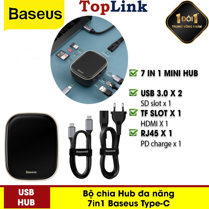 Bộ Chia Hub Đa Năng 7in1 Baseus Type-C Hub Adapter AC Multifunctional Charger: USB3.0*2 / HDMI / Type-C / RJ45 / Khe Cắm Thẻ SD/TF Cho Macbook Pro AirChào mừng bạn đến với TOPLINK - Thế Giới Phụ Kiện