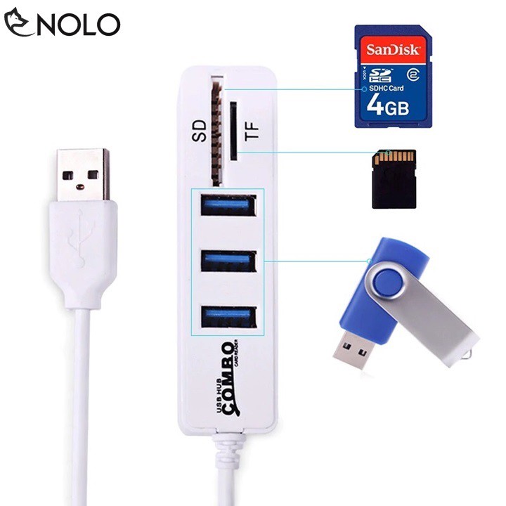Máy tính & Laptop > Phụ Kiện Máy Tính > Bộ chia cổng USB & Đọc thẻ nhớ || Bộ Chia Hub USB 2.0 Combo Đa Năng Tích Hợp 3 Cổng USB Và 2 Cổng Thẻ Nhớ SD, TFCòn hàng