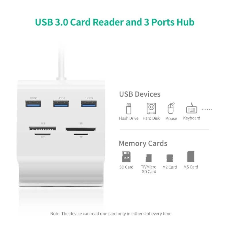 Tốc độ truyền tải tín hiệu lên đến 5Gbps, hỗ trợ kết nối cổng USB 3.0 ra 4 cổng tiện lợi: Đầu đọc thẻ nhớ, chức năng OTG (Micro USB), USB 2.0,...