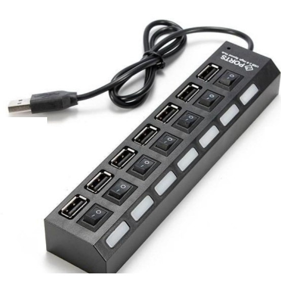 Bộ Chia Hub USB 7 Port Có Công Tắc Riêng Có Đèn Led - Đầu Chia 7 Cổng USB Tiện Dụng Tốc Độ Cao