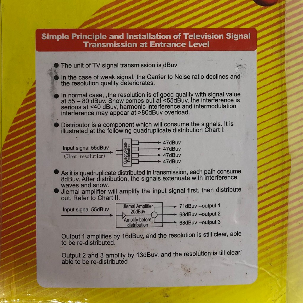 - Bộ khuếch đại tín hiệu truyền hình cáp giúp xem truyền hình rõ nét, đẹp, chất lượng hình ảnh như tín hiệu gốc ban đầu, khắc phục tình trạng hình ảnh bị mờ, nhoè, hạt, nhiễu..