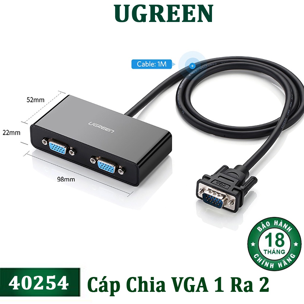 Bộ chia tín hiệu VGA 1 ra 2 màn hình chính hãng Ugreen 40254 là phụ kiện cao cấp giúp bạn dễ dàng chia sẽ hình ảnh từ một nguồn VGA trên máy tính, laptop,.. của bạn đến hai màn hình cùng lúc với chất lượng hình ảnh sắc nét. Chỉ cần cắm là nhận mà không cần sử dụng thêm một nguồn cấp hoặc cài đặt driver.