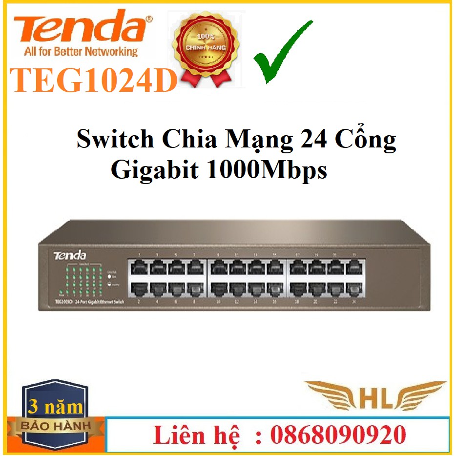Máy tính & Laptop > Thiết Bị Mạng > Bộ chia mạng || Bộ Chia Mạng 24 Cổng Giga Tenda TEG1024D , 16 Cổng Giga Tenda TEG1016D Tốc Độ 1000Mbps - Hàng Chính HãngCòn hàng