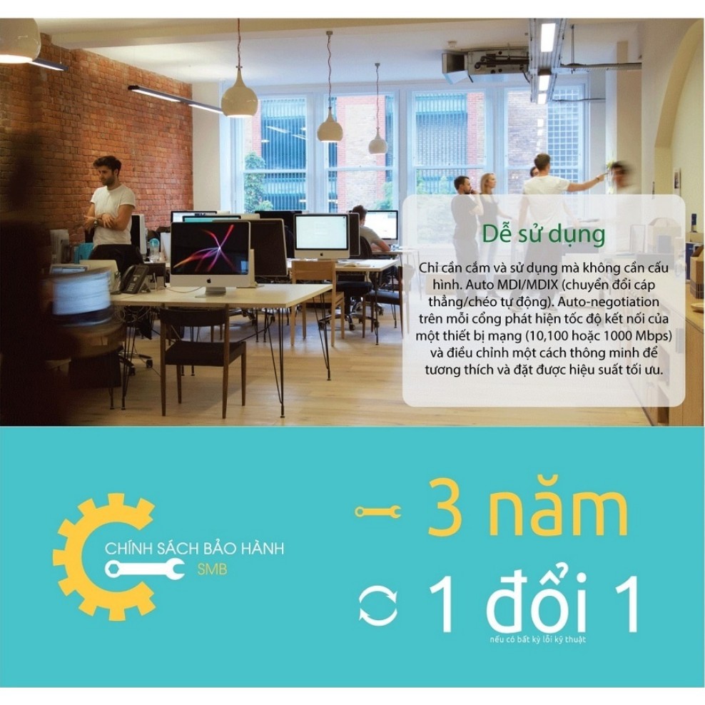 - Tính năng tự động của Switch Gigabit làm cho việc cài đặt rất đơn giản, chỉ có cắm vào và sử dụng. Không đòi hỏi bất cứ cấu hình nào.