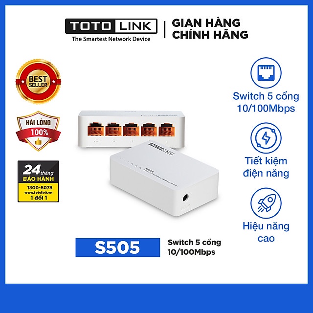 Máy tính & Laptop > Thiết Bị Mạng > Bộ chia mạng || Bộ Chia Mạng 5 Cổng 100mbps Totolink S505 – Hàng Chính Hãng - Không hộp bao bì, vỏ trầy nhẹ, hàng chưa sử dụngCòn hàng
