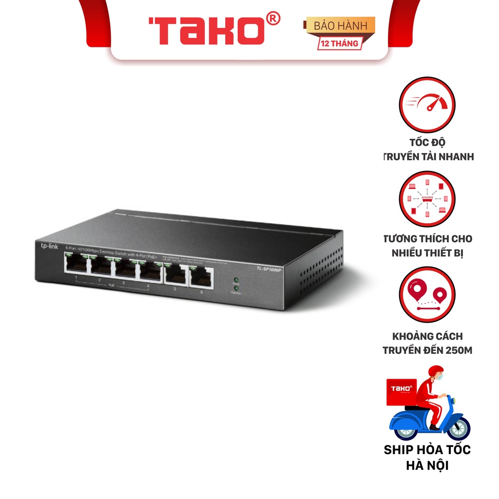 Máy tính & Laptop > Thiết Bị Mạng > Bộ chia mạng || [Mã 273ELHA100K0 hoàn 7% đơn 500K] Bộ Chia Mạng Để Bàn TPLink SF1006P 6 Cổng 10/100Mbps với 4 Cổng PoE+Còn hàng