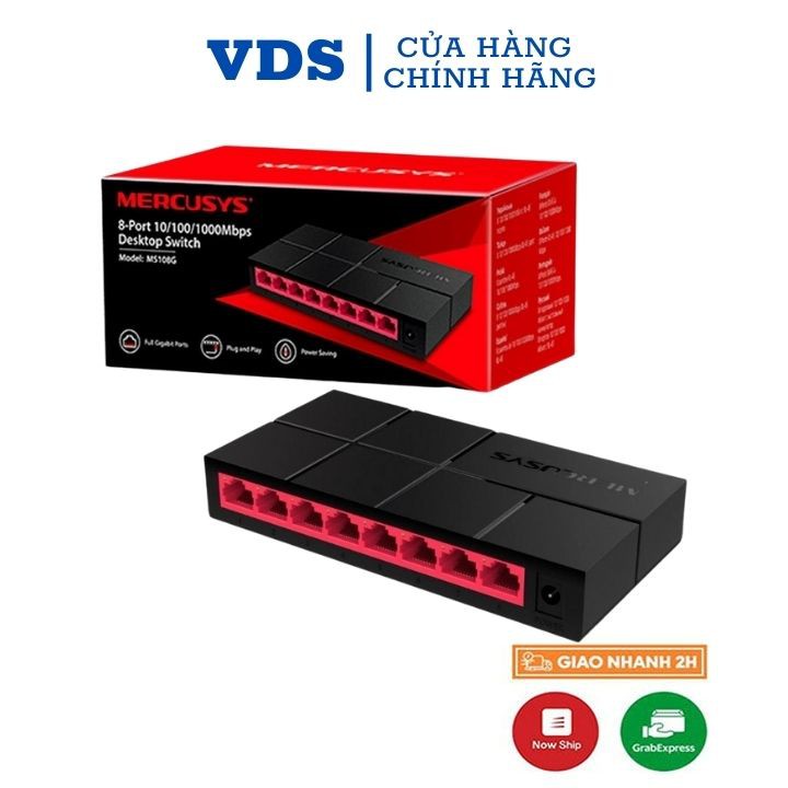 Bộ chia mạng Mercusys MS108G 8-Port 10/100/1000 Mbps switch chia lan hàng chính hãng VDS shop