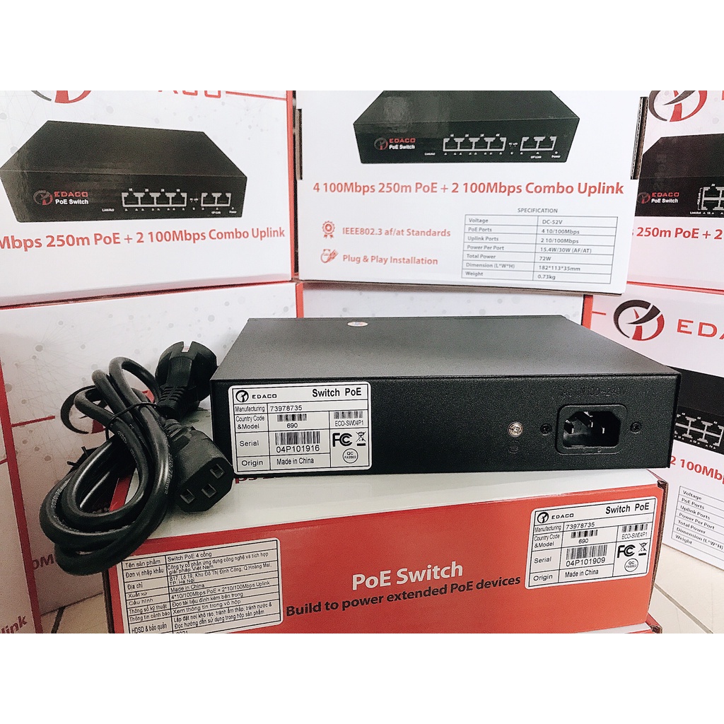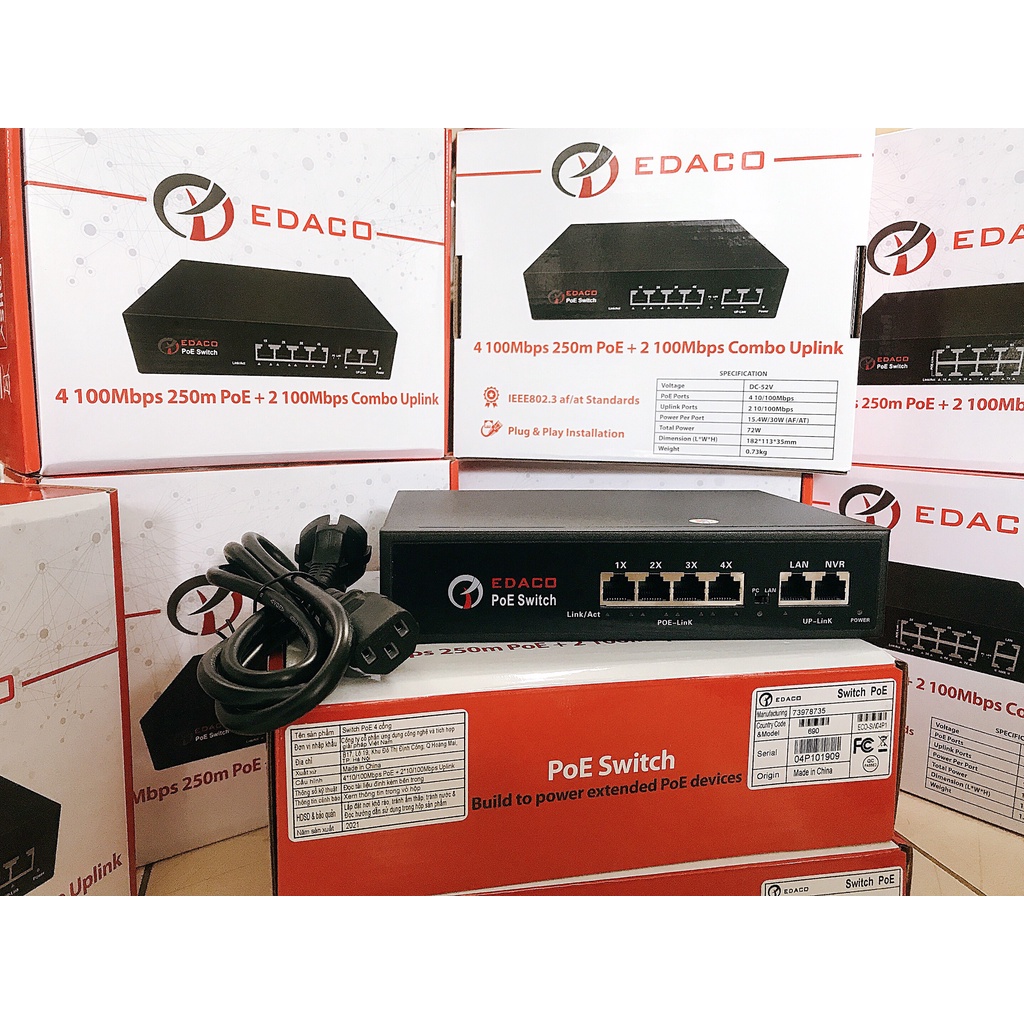 Bộ Chia Mạng PoE Switch EDACO (8 & 4 Port PoE ) + 2 Ports Uplink