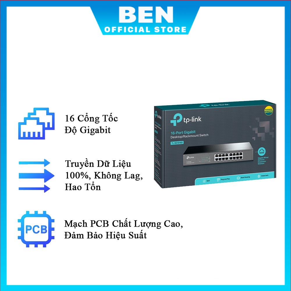 📌 Bộ Chia Mạng Switch 16 Cổng RJ45 Tp-Link TL-SG1016D Tốc Độ 10/100/1000Mbps - Hàng Chính Hãng- 16 cổng tốc độ 10/100/1000 Mbps