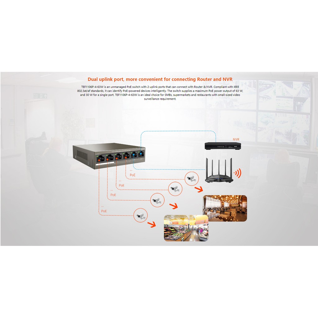 Giới thiệu Bộ chia mạng Switch 4 port POE + 2 Port 10/100 Tenda TEF1106P Superpower - Hàng chính hãng
